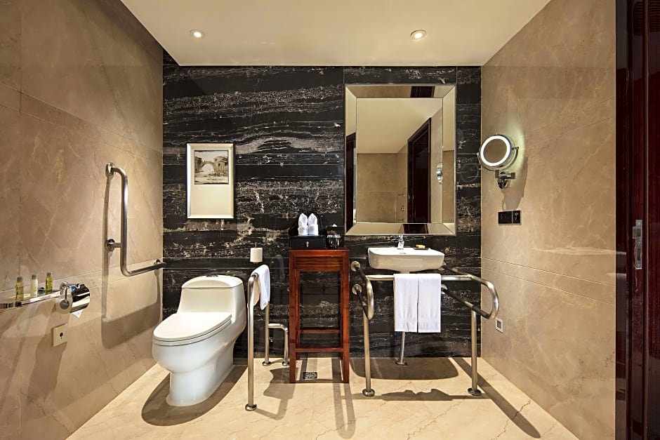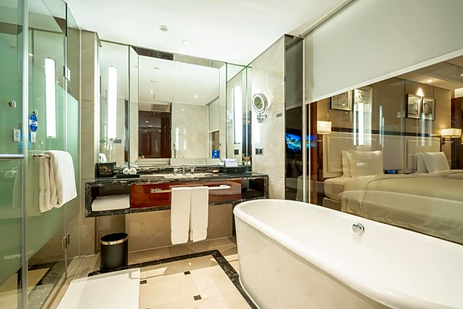 Room comes with a queen-sized bed, a 42-inch flat-screen satellite TV, a mini-bar, an in-room safe, ironing facilities and an private bathroom with a bathtub and a rainshower. Featuring floor-to-ceiling windows, room also offers views of Foshan New City.